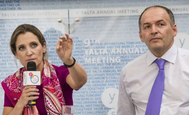 In her parliamentary filing on income and assets Freeland also mentions “speaking fees and honoraria” she received for “10th Annual Yalta Meeting, Yalta, Ukraine”. That’s a roundabout way of reporting that Ukrainian oligarch Victor Pinchuk’s eponymous foundation paid Freeland for her participation in the annual conference of his Yalta European Strategy (YES), an expensive lobbying effort to drive Ukrainian membership of the European Union and combat the Russian alternatives.