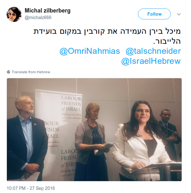 “Michal Biran put Corbyn in his place at the Labour conference.” (Twitter)
