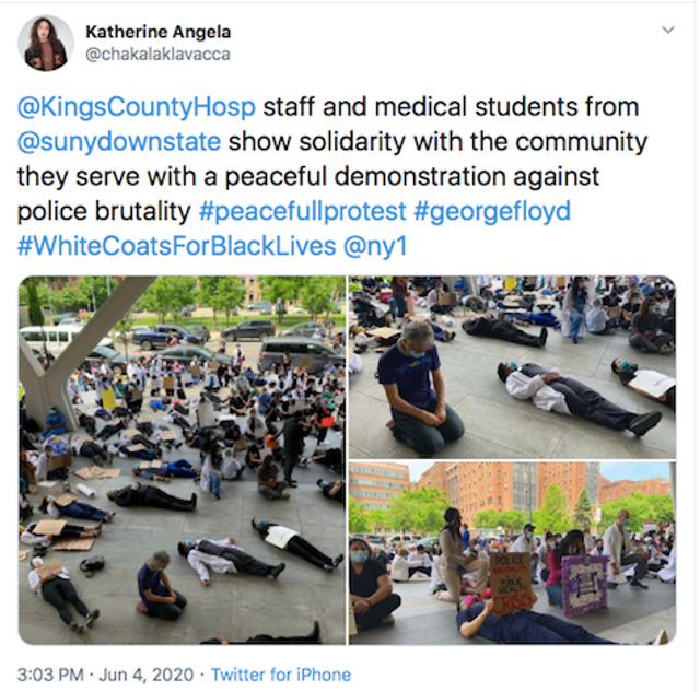 Thousands of health care workers have joined the protests against police violence that have swept the United States and other countries in recent days.